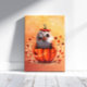 A charming illustration of a cute owl nestled in a pumpkin, inspired by a beloved plush toy on my desk. This piece uses a unique metaphor: the owl emerging from the pumpkin like a chick from an egg, symbolizing the birth of autumn. Featuring the compact proportions of a Saw-whet Owl, this little guardian watches over my creative space. With red and brown leaves swirling around, it’s a whimsical reflection of my personality and the magical, festive atmosphere of fall.