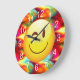 Cute Winking Happy Face and Bright Colors Large Clock