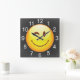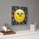 Fun, funky custom wall clock with a cute winking yellow cartoon vector illustration face on a chalkboard background. With large easy to read numbers. A pretty, bright and cheerful, happy clock. A cool clock for a nursery or kids / children's room. An adorable, whimsical, colourful clock - perfect for a child.