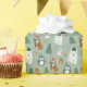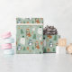 This cute wrapping paper features winter animals, wearing hats and scarves - you'll find polar bears, penguins, foxes, squirrels, and rabbits. Snowflakes, candy canes, Christmas trees, and gingerbread man cookies add a fun, whimsical touch. The background color is mint green, but it can be customized to any color you'd like. Perfect for gift giving this holiday season!