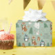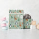 This cute wrapping paper features winter animals, wearing hats and scarves - you'll find polar bears, penguins, foxes, squirrels, and rabbits. Snowflakes, candy canes, Christmas trees, and gingerbread man cookies add a fun, whimsical touch. It contains text templates for a holiday greeting and name. Easy to personalize for unique gift giving this holiday season! The background color is a light mint green, but it can be customized to any color you'd like.