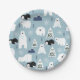 Cute Winter Bear and Penguin Pastel Blue Party Paper Plates