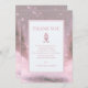This elegant pink winter bear baby shower Thank you note features an adorable bear cub surrounded by a snowy winter background.