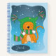 A cute blue spiral notebook for kids with the illustration of a ginger cat standing outside on a winter day . Personalize it with your child's name . Choose the type of paper you ant to use . It is currently set on sketch/handriting practice . Ideal for homeschooling :)