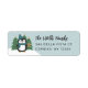 These cute address labels feature a hand drawn penguin, wearing a hat and scarf and standing in front of some Christmas trees. Snow and a light teal blue background give a winter feel. Perfect for sending out Christmas holiday greetings!