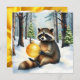 Cute Winter Raccoon with Gold Ornament Christmas Holiday Card