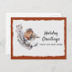 A cute rust and gray colored winter robin sits on a branch of white and green leaves against a snowy white deckled edge paper background. The design itself is overlaid on a warm rust color drawn from the bird's own feathers. The example text on front of our holiday new address postcard reads "Holiday greetings from our new home." This text and all text on back of the card can be revised easily - or deleted for hand-writing - via the personalization template.