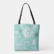 A cute winter snowflake holiday season tote bag in turquoise-blue is a great winter accessory. Follow the link to customize using the design tool and personalize the background color. For unique designs or color and design customization, contact https://t.me/KBMD3signs_chat.