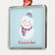 Cute Winter Snowman Blue Custom First Name Metal Ornament
