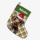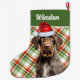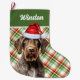 Cute Wirehaired Pointer Dog Red Green Plaid Custom Large Christmas Stocking