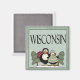 Cute little penguins friends come on a square refrigerator magnet with Wisconsin slogan.