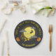 Get ready for a spooktacular celebration with these Halloween-themed plates. It features a playful black cat in a pointy hat soaring on a broomstick against a glowing full moon. Customize each plate with names and messages for a unique touch and bring festive fun to any gathering.