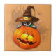 Cute Witch Cat and Pumpkin Halloween Friends Ceramic Tile