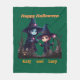 Get spooky and adorable with this charming Halloween fleece blanket featuring two cute witches towering over a moonlit graveyard. These enchantresses bring a whimsical twist to the spooky season. Perfect for showing off your witchy side in style.
