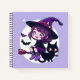 Cute Witch with a Broom Black Cat Bats Moon | Notebook