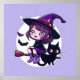 Cute Witch with a Broom Black Cat Bats Moon | Poster