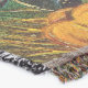 A quality printed throw has its advantages. This is a much finer weave throw than its loopier cousins, and though lighter, it is worth the investment for custom room accessorizing. The back is much prettier than the typical brown, and the fringe on the long sides very vivid, the selvage nicely done. Before photographing, I washed the throw in cold water, delicate, with a thicker woven throw the same size. On tumble dry low, this throw was dry in half the time as the other. This is a very practical quality if you use throws for furniture covers or to wrap up in frequently. The sleekness of the fabric makes it a great layer for accenting or protecting without the feeling of sitting on too much stuff. Perfect for napping or when you feel a light chill coming on. The color printing is beautiful and on this fabric, matched the design and color of my Photoshop image. This is an advantage for blending room fabrics and colors. The fringe on the short sides prints the colors from the design image and therefore varies from the side fringe. I streaked a white fractal line through the plaid pattern to give the illusion of weaving. This printed as crisp as an illusory thread, and put some white in the short side fringe, showing another advantage of print vs loomed- for artistic purposes, line lines, detail, and color integrity can be planned and preserved. My loomed throws have color limitations and more of a needlepoint texture. Print throws reproduce an exact image. The throw felt a little stiff straight out of the package, but this went away in the first delicate wash. Of course I searched the wash water for ink or bleeding and there was none.