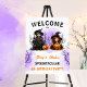 Foam Board Welcome sign for twin boy and girl Halloween Birthday party with a cute little wizard and witch in purple, black and orange. Cute, magical and a bit spooky. : ) Easily personalize all the text - Kate Eden Art