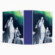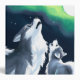 Like father, like son! This is an AI generated artwork of a father wolf and his oldest male pup, both howling at the full moon on a cold winter's night, with aurora borealis lights filling the sky. Reverse shows identical design.