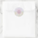 A thank you sticker for a baby shower. With the bottom half decorated in a fun pattern illustrated with adorable foxes, cute little birds and whimsical green trees. The top half has a lavender purple background with a linen style texture. The center has a pastel green banner with a pink circle over top which holds the words: Baby Shower Thanks for coming. Add your guest of honors name to the top in curved text. I love this type of whimsical pattern for a baby shower, it is fun-loving and child-like and I'm happy to share it with you, I hope you like it too.