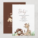 Cute Woodland Animals Brown & White Baby Shower Invitation