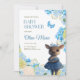 Cute Woodland Animals Deer Blue Floral Baby Shower Invitation