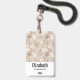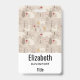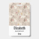 Personalized name badge with a cute Nordic style pattern. Winter pine trees, bears, reindeer and squirrels. Light brown color.