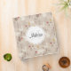 A binder with a cute Nordic style pattern. Winter pine trees, bears, reindeer and squirrels. Light brown color. A white circle layered over top with your name and monogram initial inside.