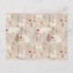 A postcard with a cute Nordic style pattern. Winter pine trees, bears, reindeer and squirrels. Light brown color.