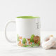 A cute woodland animals mug suitable for adults or children. The personalized black typography text contains the recipients name and is flanked by a woodland animals border including green forest and foliage, and animals including a fox, deer, rabbit, bear and hedgehog.