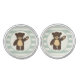 Cute Woodland Brown Bear; Sage Green Stripes Cufflinks