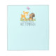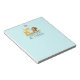 A personalized notepad with a cute illustration featuring a baby deer and a little squirrel holding an acorn and a butterfly flying above their heads. These adorable woodland creatures on standing on some grass with some whimsical mushrooms by their feet. Light blue background.