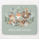 Cute Woodland Forest Animals Greenery Monogram Mouse Pad