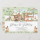 Cute Woodland Forest Animals Wood ONE 1st Birthday Invitation