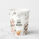 Adorable Sweet Woodland Baby Shower Paper Cups. Design features cute watercolor animals amongst botanical autumn fall florals and foliage, mushrooms, butterflies and a customizable template.