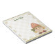 Whimsical fairy tale illustration of a cute woodland gnome wearing a strawberry hat surrounded by wild strawberry leaves and flowers. Perfect fantasy artwork for garden lovers and gnome lovers! Add your name and personalize this adorable yellow gingham and strawberry gnome notepad.