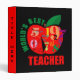 School teacher's three ring binder design- Cute design for teachers has a bright red apple with a leaf and stem. Superimposed over the apple are numbers with geometry and math formulas in all kinds of bright colors. Along the side of the apple and at the bottom it reads World's Best Teacher in all caps in red and green letters. On a black background, which can be changed to your choice of colors. Makes a great back to school gift for a teacher that you appreciate, especially math teachers. Want to buy a different favorite teacher gift idea with the same cute design? This teacher binder design can be bought on many other teaching gifts, including teacher shirts and other apparel in many colors, sizes, and styles for men and women. Add matching teacher stickers, tote bags for favorite teachers, teaching magnets, and many other items, as we have this cute teaching design on lots of products, including office supplies and gifts, in our Zazzle store. Edit the spine to suit your needs. Add a name, title, or other wording if you wish. Change the matching red color or the matching green on the back. Not just for school teacher binders, use for photos, scrapbooking, and more.