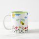 Cute Yellow Bee sitting on flowers Two-Tone Coffee Mug
