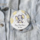 This adorable baby shower button features text "Big Brother to be" with yellow and gray baby elephant with balloons, silver stars and moons. Easily customized for your event by clicking personalize. Great for gender neutral baby shower.