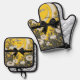 Cute Yellow Black Bow Easter Oven Mitt & Pot Holder Set