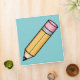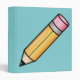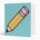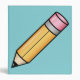 Destei's cute yellow cartoon pencil illustration with a pink eraser on top. The background color is blue.