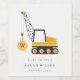 Cute Yellow Construction Crane Vehicle Baby Shower Wine Label