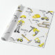 Cute Yellow Construction Truck Dump Pattern Wrapping Paper for a construction-themed party.