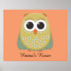 Personalized poster with a cute yellow, green and orange owl on a light orange background. The text can be anything you want it to be. Customize by choosing your text, font, font color and size.