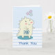 Set on a light blue and white pattern of polka dots on top and stripes on the bottom. Personalized message inside.