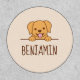 Simple cartoon illustration of a cute yellow labrador or golden retriever dog peeking from behind a divider. Only its head and front paws are visible. Customize with your kid’s name.