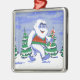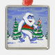 Cute yeti christmas in forest metal ornament