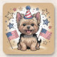 Cute Yorkie Celebrating Independence Day Beverage Coaster