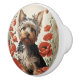 Cute Yorkshire Terrier Botanical Red Poppies Ceramic Knob