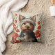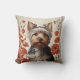 Cute Yorkshire Terrier Botanical Red Poppies Throw Pillow
